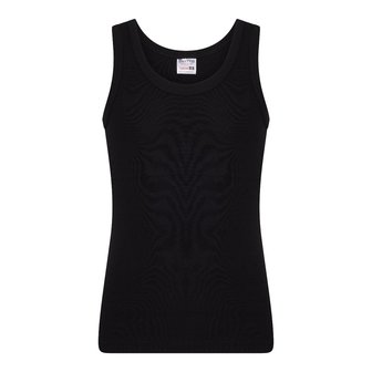 Elastische jongens singlet, zonder zijnaden, gemaakt van een zachte microstof (98% Polyamide en 2% Elastomeer). De hals en armsgaten zijn afgezet met een elastisch boord.